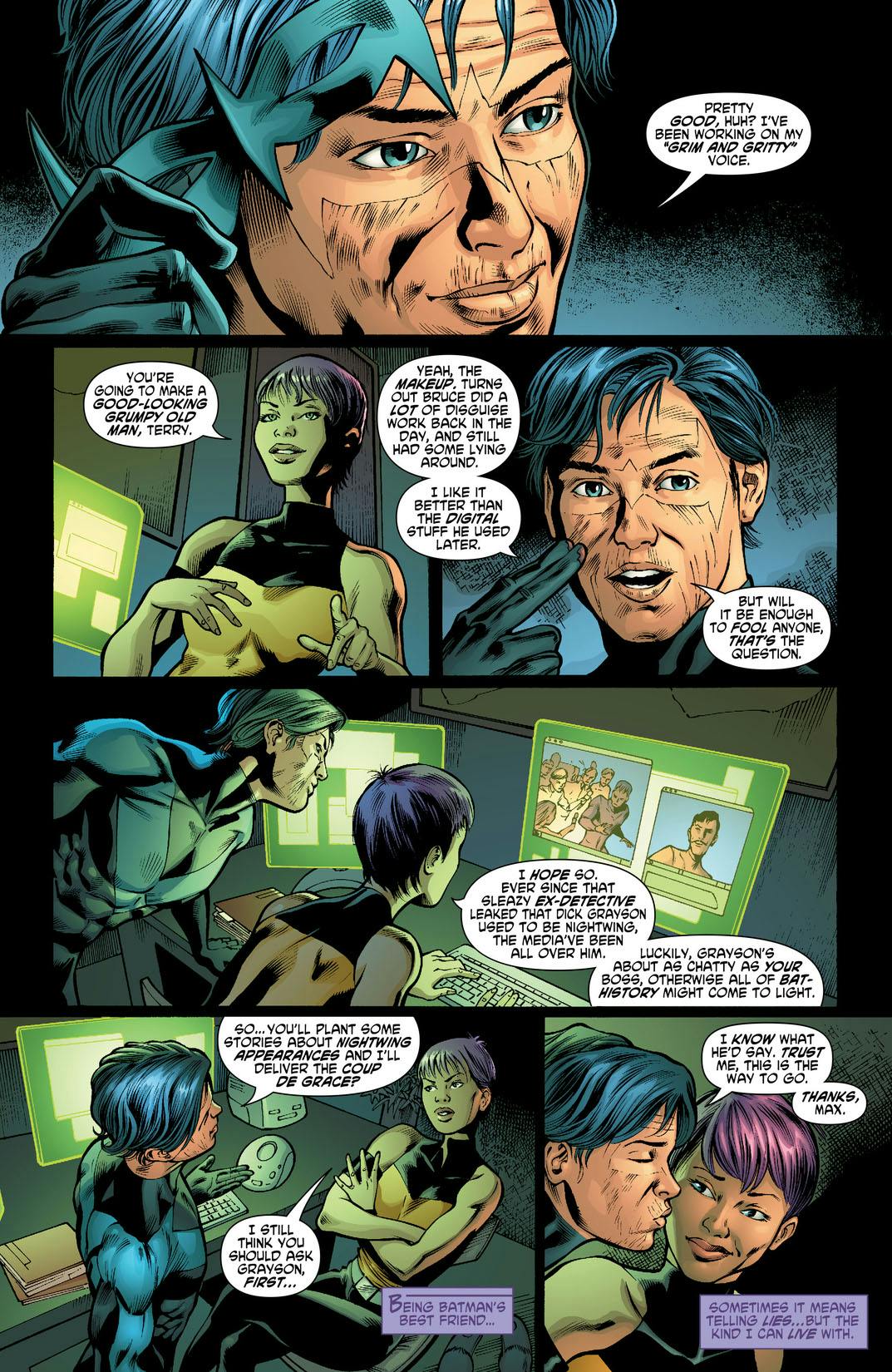 Having their secret identity exposed is the worst nightmare of any hero who wears a mask—and that nightmare is coming true for Dick Grayson! Bruce and Terry still think they can put this genie back in the bottle, but only with the help of Max, Terry's closest confidant and computer wunderkind. But Max has problems of her own (the kind that Terry can't ever find out about) and Dick has his own ideas about how to protect himself!