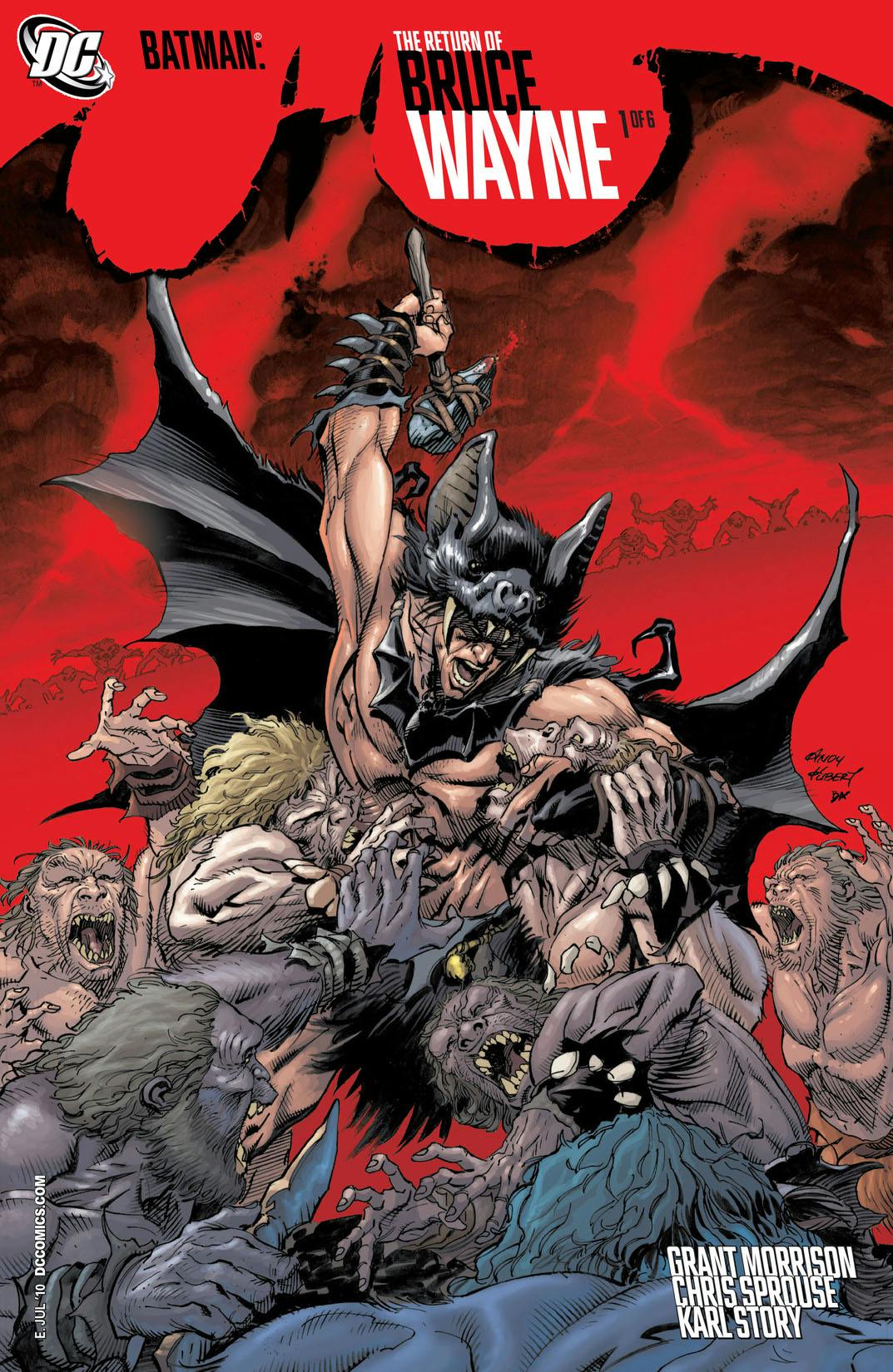 Bruce Wayne must battle his way back to the present by fighting his way through time itself—starting with an adventure in prehistoric times! It's Caveman Batman in the premiere issue of Grant Morrison's time-hopping epic, featuring art by Chris Sprouse.