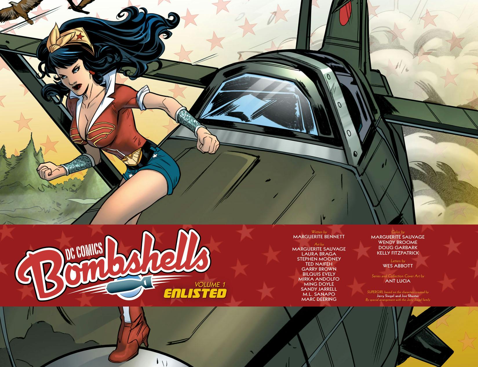 The incredibly popular DC Collectibles line is brought to life in these stories that reimagine the course of history! As Word War II rages across Europe, the Allied forces issue a call to arms for the greatest heroines the world has ever known: THE BOMBSHELLS! KATE KANE, the all-American Batwoman; DIANA OF THEMYSCIRA, warrior Princess of the Amazons; KARA STARIKOV and KORTNI DUGINOVNA, defenders of Mother Russia; and MERA, royal daughter of the legendary Atlantis! With aid from their allies at home and abroad, these mighty women will turn the tide of war and defend those inviolable rights of Truth, Justice and Freedom. From writer Marguerite Bennett (BATGIRL, EARTH 2: WORLD’S END) and featuring artists including Marguerite Sauvage (HINTERKIND), Laura Braga (WITCHBLADE), Bilquis Evely (DOC SAVAGE), Mirka Andolfo (CHAOS) and Ming Doyle (CONSTANTINE: THE HELLBLAZER) comes DC COMICS: BOMBSHELLS VOL. 1: ENLISTED. Collects DC COMICS: BOMBSHELLS #1-6.