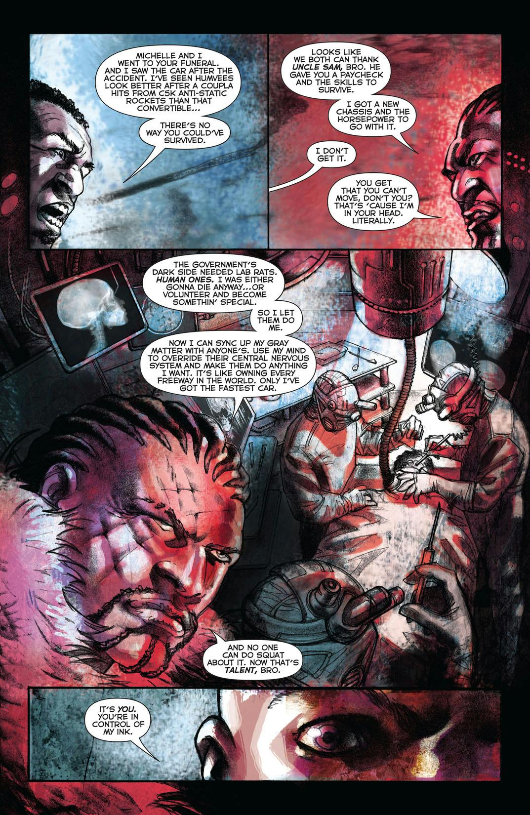 The situation in Liberty Hill just goes from bad to worse as the Tattooed Man struggles to keep his city from being destroyed. But what help can he offer thousands of terrified citizens? He can't even keep himself out of danger from any number of threats, including the cops, an unseen villain and his own powers!