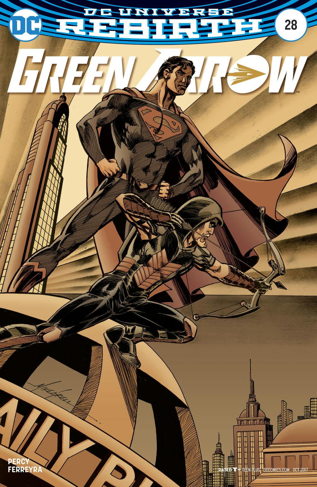 “HARD-TRAVELING HERO” part three! Metropolis is Oliver Queen’s next stop on his quest to take down the Ninth Circle, but he may be too late when the evil financiers start a war with the one man they can’t buy: Lex Luthor! That’s more fat cats than even Ollie can handle, which means this is a job for Superman and Green Arrow!