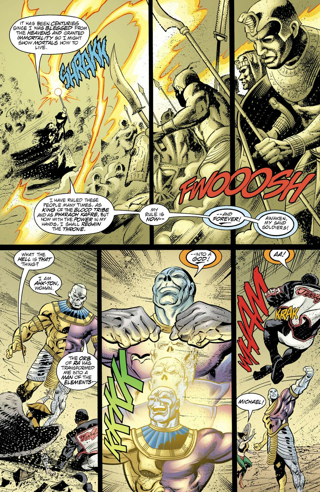 Thrown back into Ancient Egypt, Hawkgirl, Captain Marvel and Mister Terrific team up with a few familiar, yet different faces: Prince Khufu, Teth-Adam, and the powerful mage, Nabu—a.k.a. Hawkman, Black Adam, and Dr. Fate!
