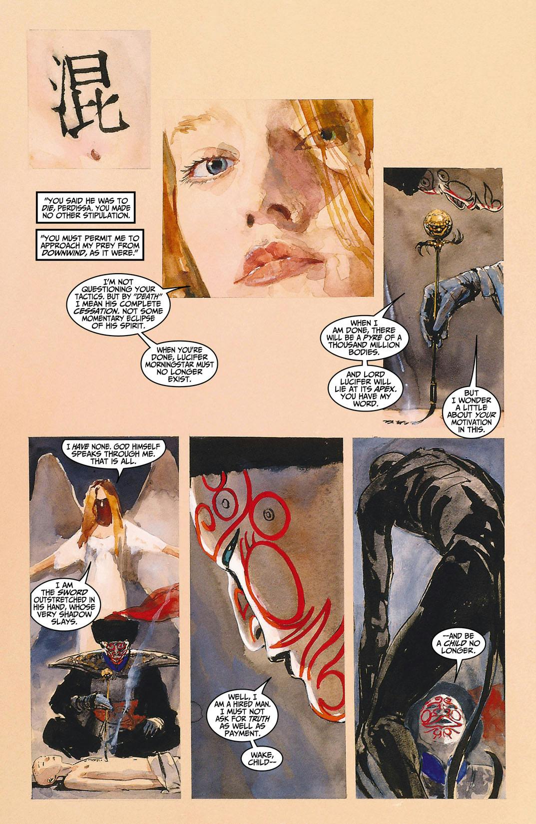 A beautiful angel with an ancient score to settle puts out a contract on Lucifer Morningstar! Alerted by an attack on his L.A. bar, Lucifer follows a trail that leads him from the mercurial realm of the Dreaming to the luminous streets of Beijing. Featuring a guest-appearance by the new Sandman!