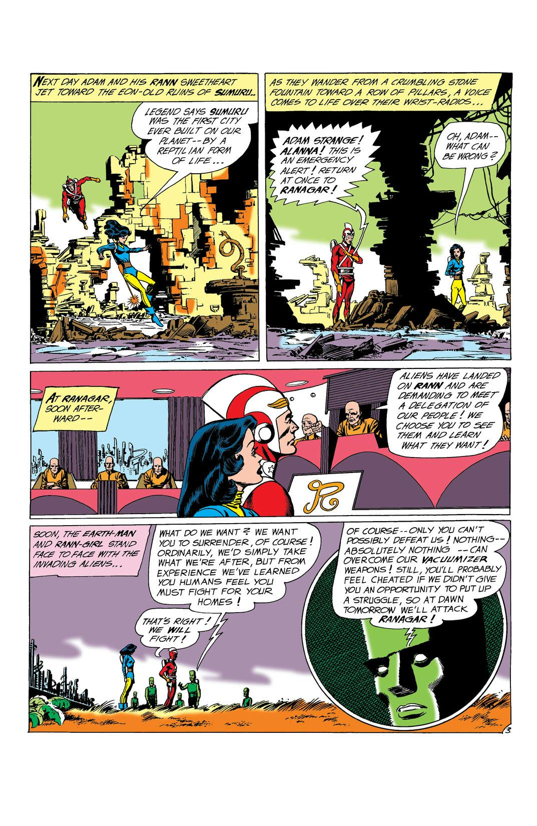 Traveling to an equatorial jungle in Peru, Adam Strange rockets to ancient Incan ruins in order to intercept the Zeta Beam that will transport him to Rann. Upon arriving on his adoptive home world he is taken to the ruins of Sumuru by Alanna. Arriving there, they encounter an alien race whose mission is to take over Rann!