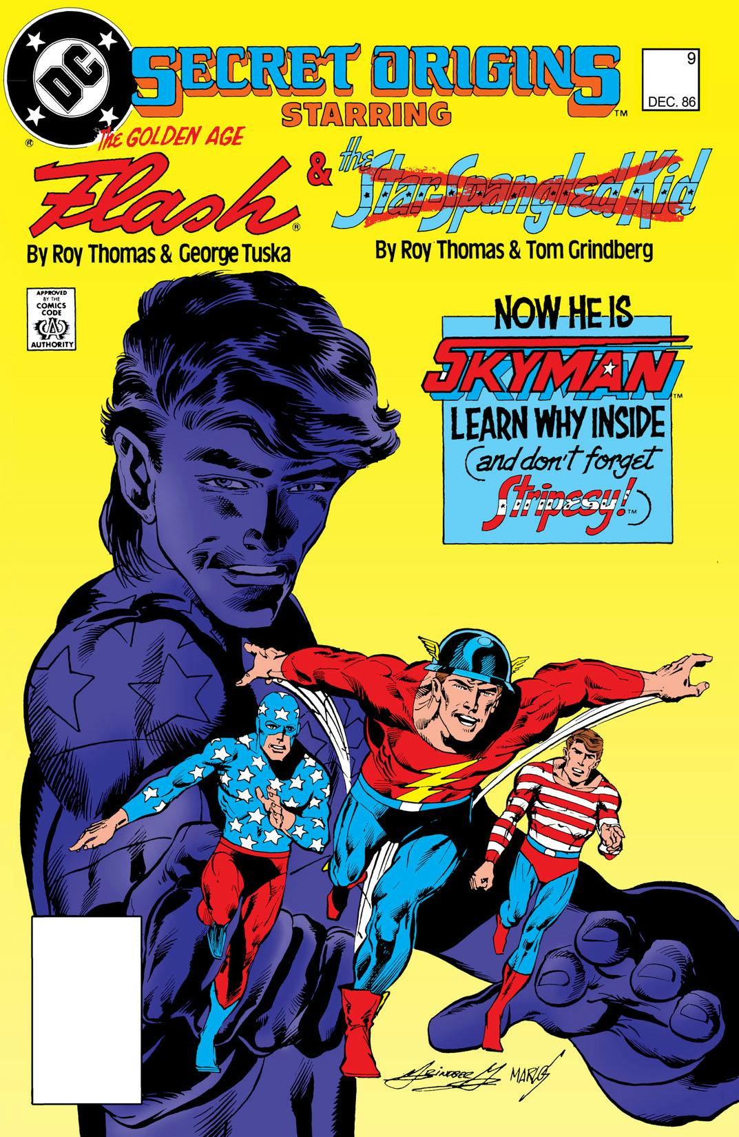 “THE SECRET ORIGIN OF THE STAR-SPANGLED KID AND STRIPESY!” Find out why Sylvester Pemberton became the Star-Spangled Kid...and why from now on you better call him Skyman! Plus, “THE SECRET ORIGIN OF THE GOLDEN AGE FLASH!”