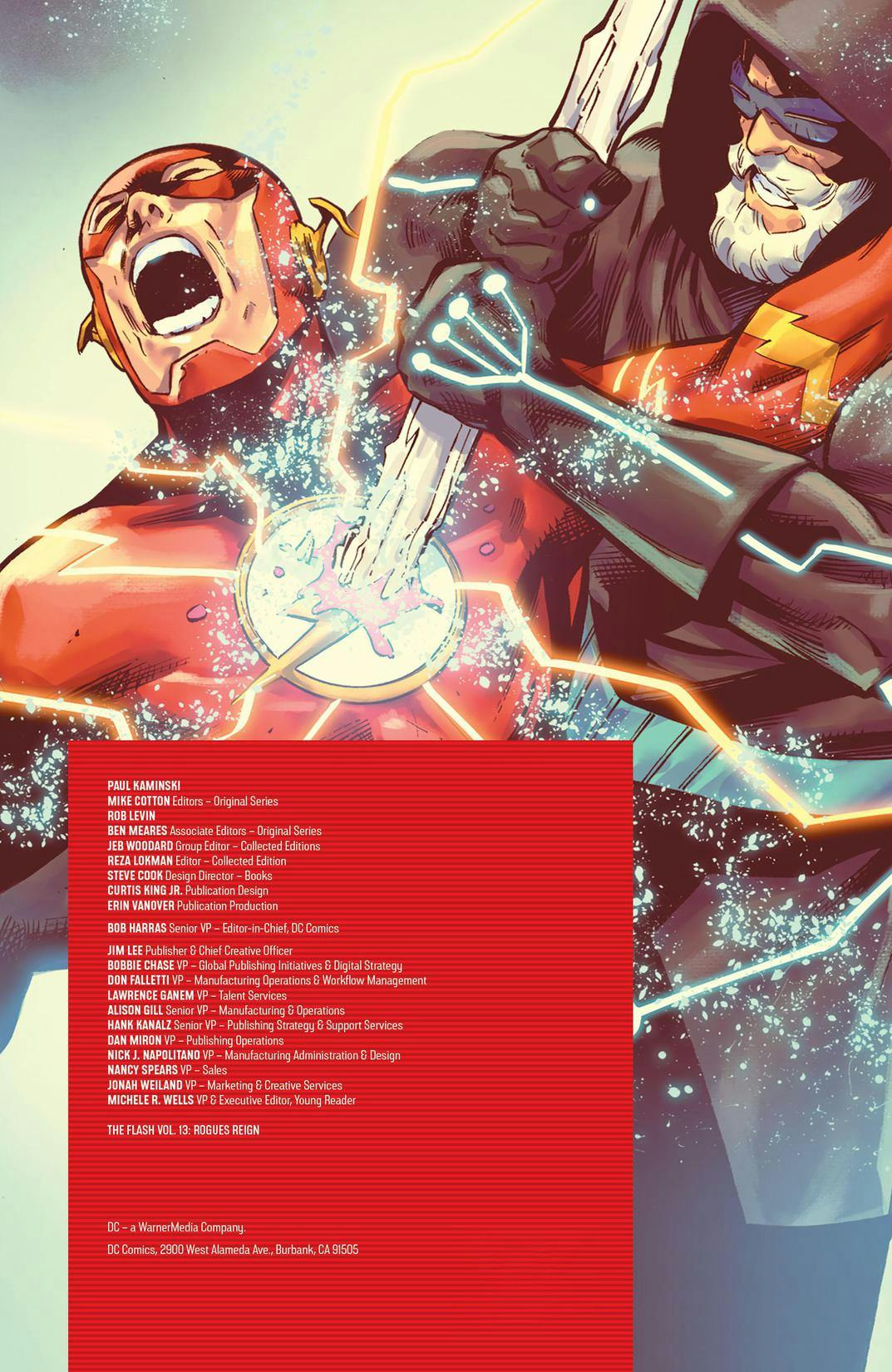 The Speed Force is dead, doom has gripped the Earth, and the Flash lives in a nightmare! Powered up by Lex Luthor’s offer, Captain Cold led his team to their ultimate victory over Central City. The Rogues have reshaped reality itself into their own kingdoms of cruelty-Heat Wave’s volcanic territory, Weather Wizard’s floating armory of the elements, and at the center of it all, the icy castle of Captain Cold. But there is hope in the darkness, as the Flash battles his way back from the brink and discovers a way to reverse the Rogues’ reign once and for all. But with his powers out of control, can he outrun the inevitable? Collects The Flash #82-87.
